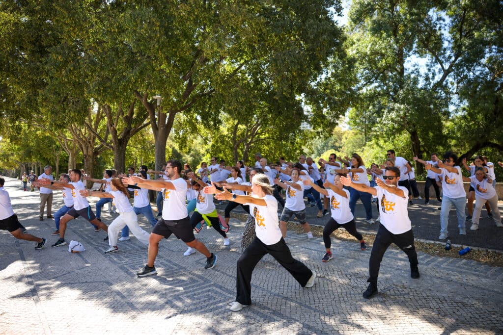 Os colaboradores do IPDJ experimentaram exercícios simples de alongamento e ginástica laboral. No final, terminaram a manhã com uma caminhada de 30min até ao Parque Eduardo VIII, onde fizeram uma mini aula para aquecer o corpo.